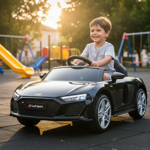Questa auto non è solo potente, è anche comoda. Le sospensioni reali e le ruote grandi garantiscono stabilità anche su terreni irregolari. L’esperienza è arricchita dalla tecnologia: ingresso USB per la musica, suoni predefiniti e luci a LED funzionanti. Gli sportelli apribili rendono l’ingresso in auto un momento realistico e divertente.