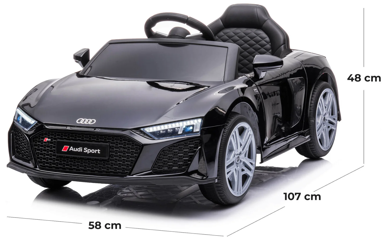 Auto Elettrica per Bambini Audi R8 Sport Nera 12V – Sedile in Pelle & Telecomando